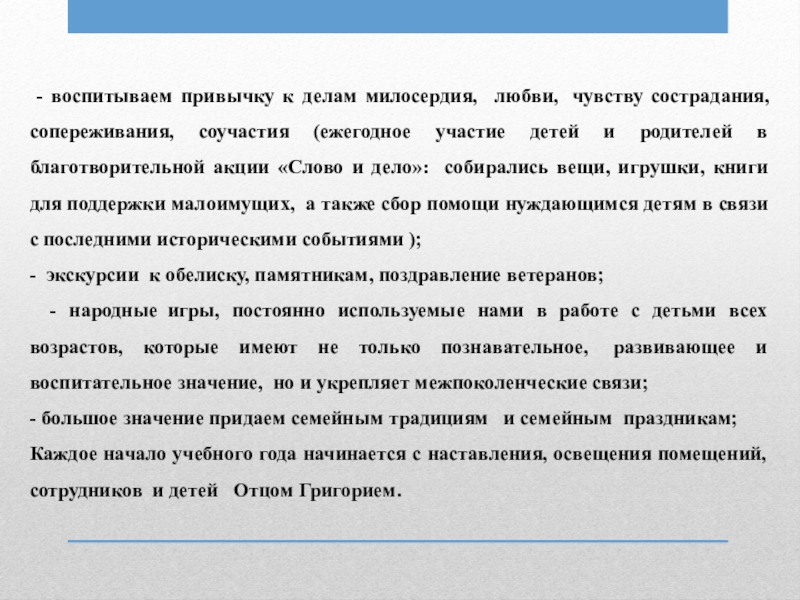 Слайд 14 - воспитываем привычку к делам милосердия, любви, чувству сострадания, сопереживания,