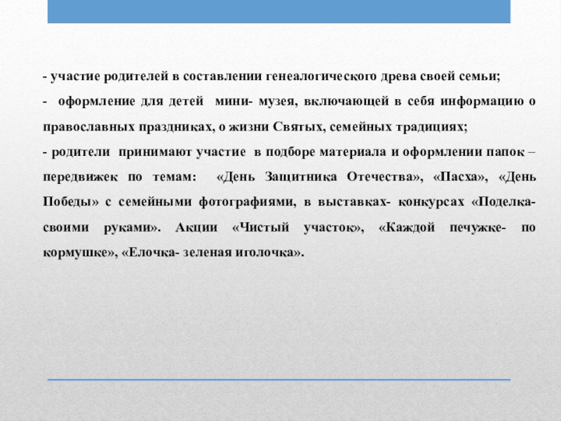 Слайд 13- участие родителей в составлении генеалогического древа своей семьи;