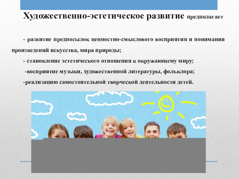 Слайд 8Художественно-эстетическое развитие предполагает