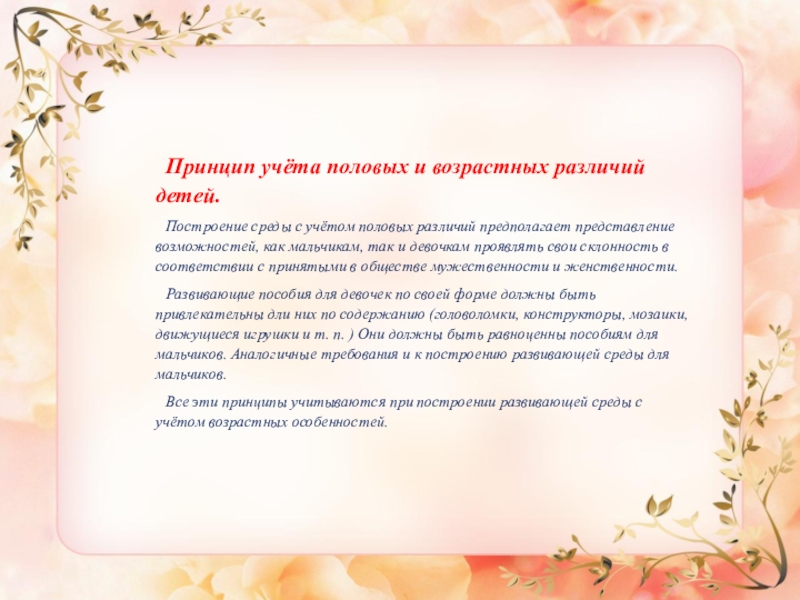 Слайд 10Принцип учёта половых и возрастных различий детей.