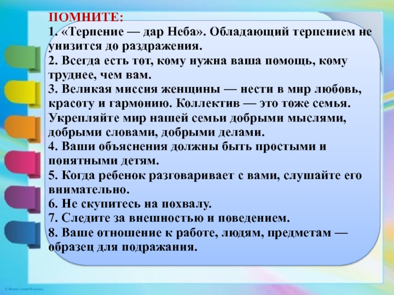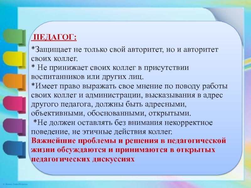 Презентация, доклад на тему Консультация для воспитателей: Правила поведения и общения педагогов