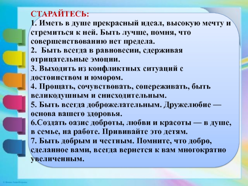 быть примером для подражания в поведении и общении. Немаловажное значение имеет и общение воспитателя с коллегами и родителями. Гармоничное общение может состояться в том случае, если педагог способен выслушать и понять собеседника, умеет считаться с мнением других людей. .