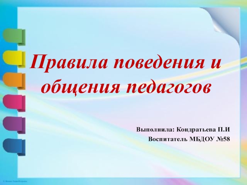 Правила поведения и общения педагоговВыполнила: Кондратьева П.ИВоспитатель МБДОУ №58