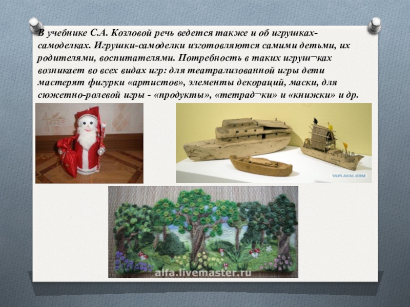 Слайд 9В учебнике С.А. Козловой речь ведется также и об игрушках-самоделках. Игрушки-самоделки