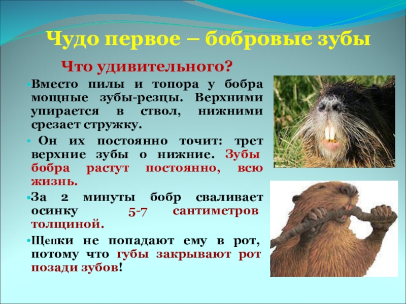 найти ответ на вопрос «Какими чудесами славится бобр?»