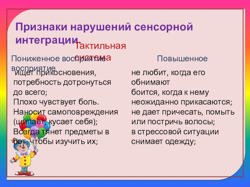 Все эти игры и материалы используются для регулирования тактильной чувствительности ребенка и способствуют улучшению координации движений, лучшему осознанию собственного тела в пространстве, значительному развитию мелкой и крупной моторики, пониманию свойств и качеств предметов, осознанию себя в окружающем мире.