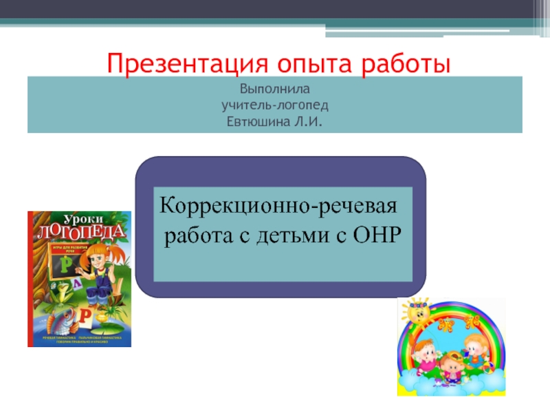 Презентация опыта работы  Выполнила учитель-логопед Евтюшина Л.И. Коррекционно-речевая	 работа с детьми с ОНР