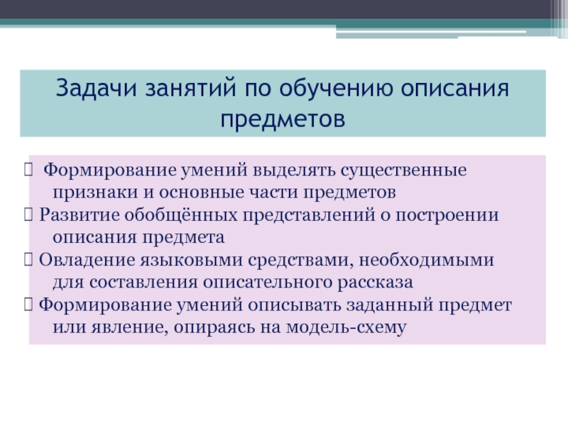 Слайд 10Задачи занятий по обучению описания предметов