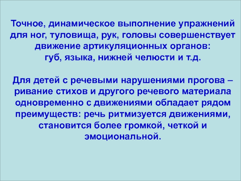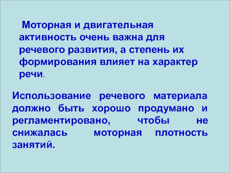 Использование речевого материала должно быть хорошо продумано и регламентировано, чтобы не снижалась моторная плотность занятий.