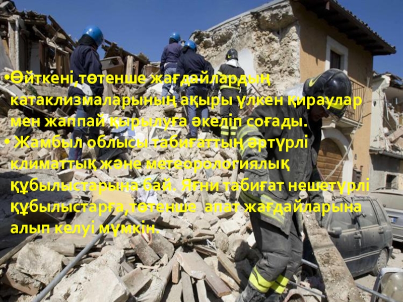 Өйткені,төтенше жағдайлардың катаклизмаларының ақыры үлкен қираулар мен жаппай қырылуға әкеліп соғады.