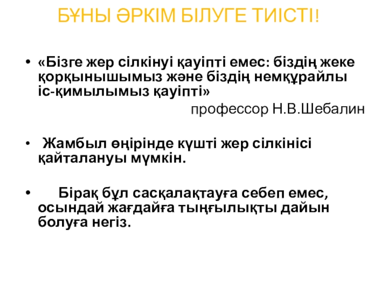 Еш қандай келесі болатын сілкініс туралы сәуегейлік танытып, болжам айтып, мәлімет беруші болма.