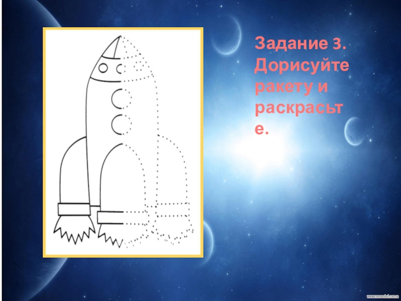 Задание 3. Дорисуйтеракету и раскрасьте.