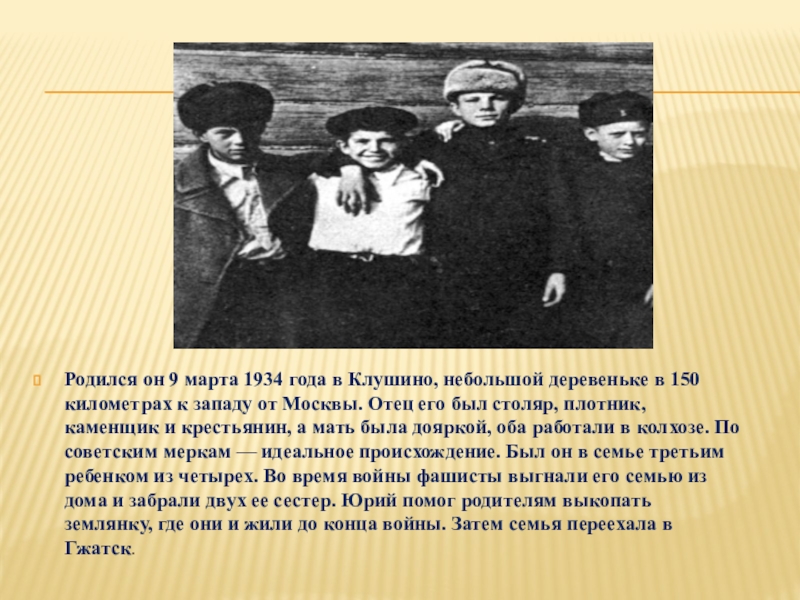 Слайд 3Родился он 9 марта 1934 года в Клушино, небольшой деревеньке в