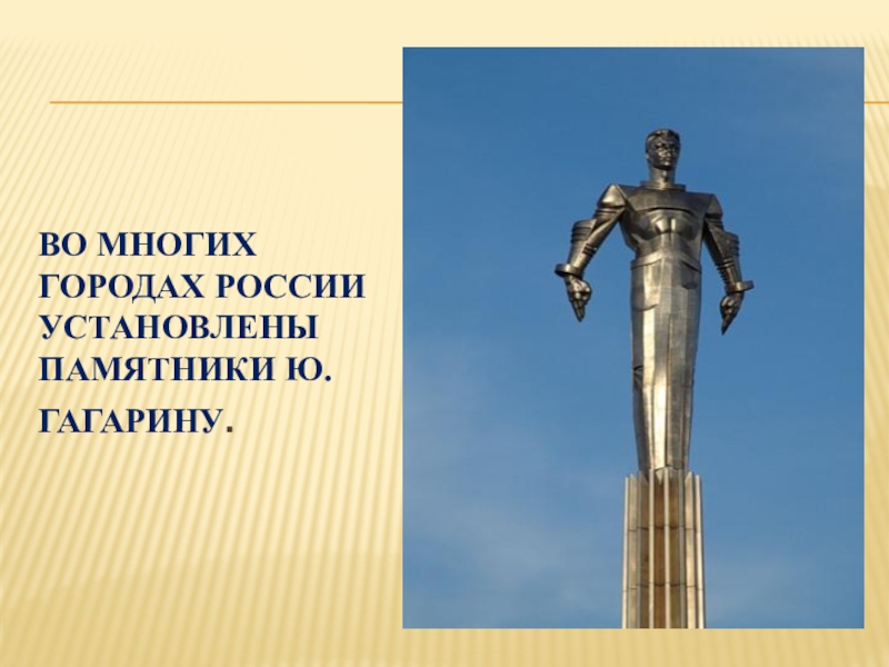 Слайд 49Во многих городах России установлены памятники Ю. Гагарину.