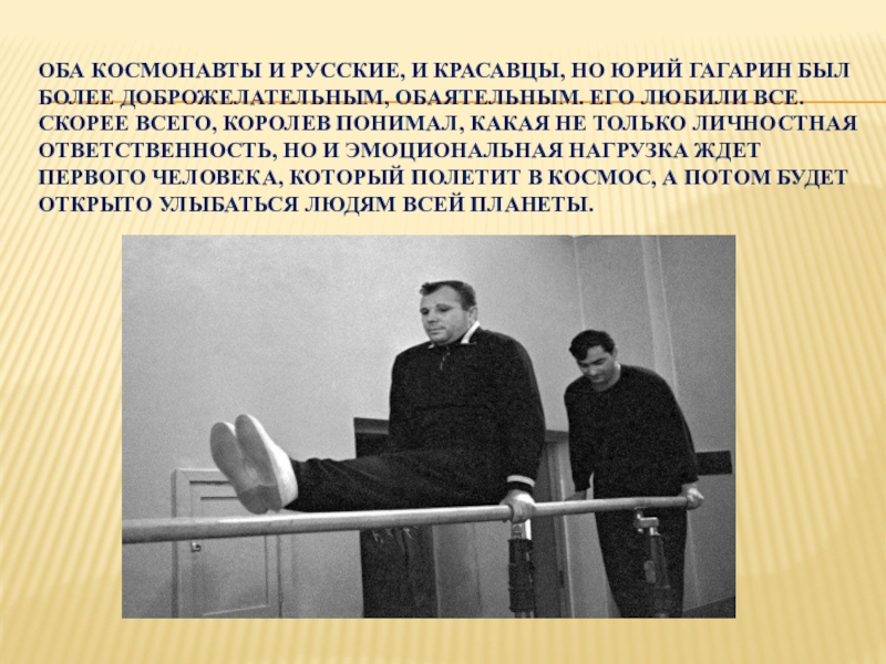 Слайд 24Оба космонавты и русские, и красавцы, но Юрий Гагарин был более