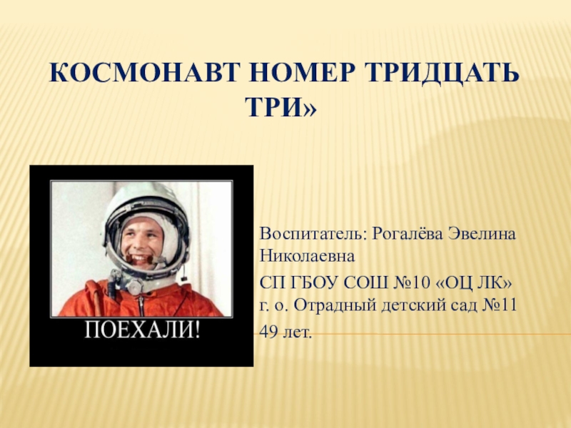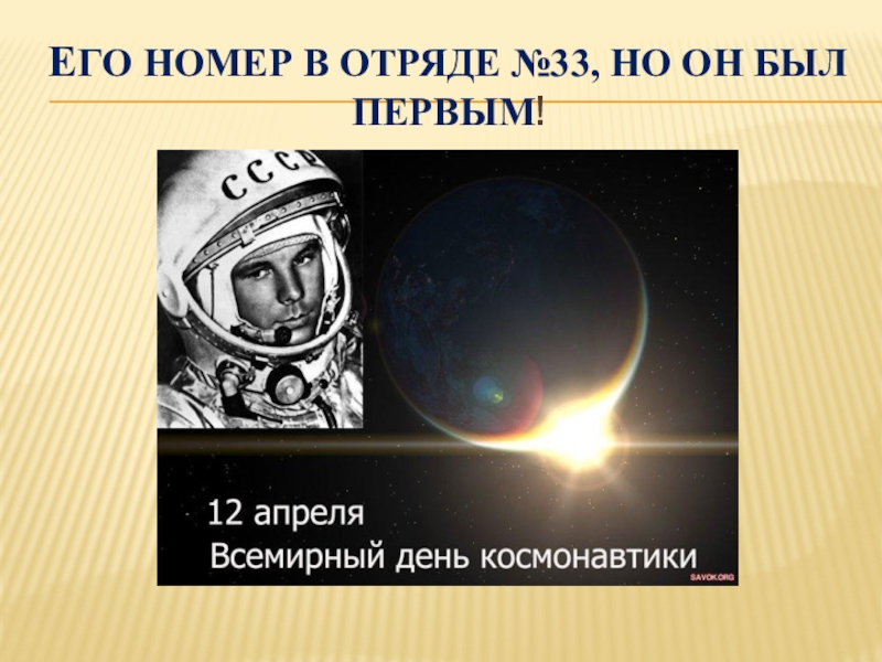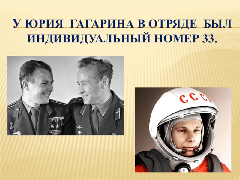 Слайд 35У ЮРИЯ Гагарина в отряде был индивидуальный номер 33.