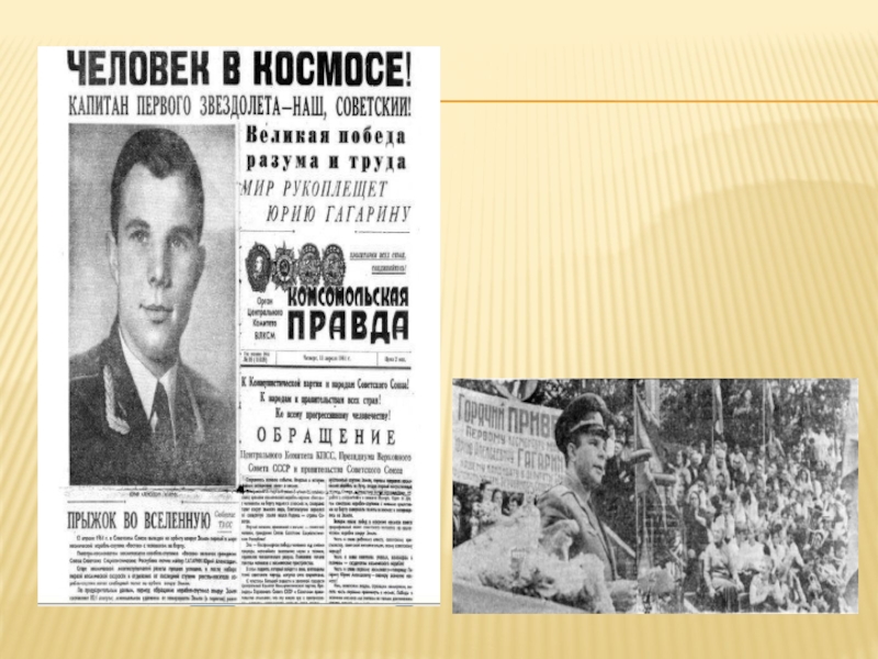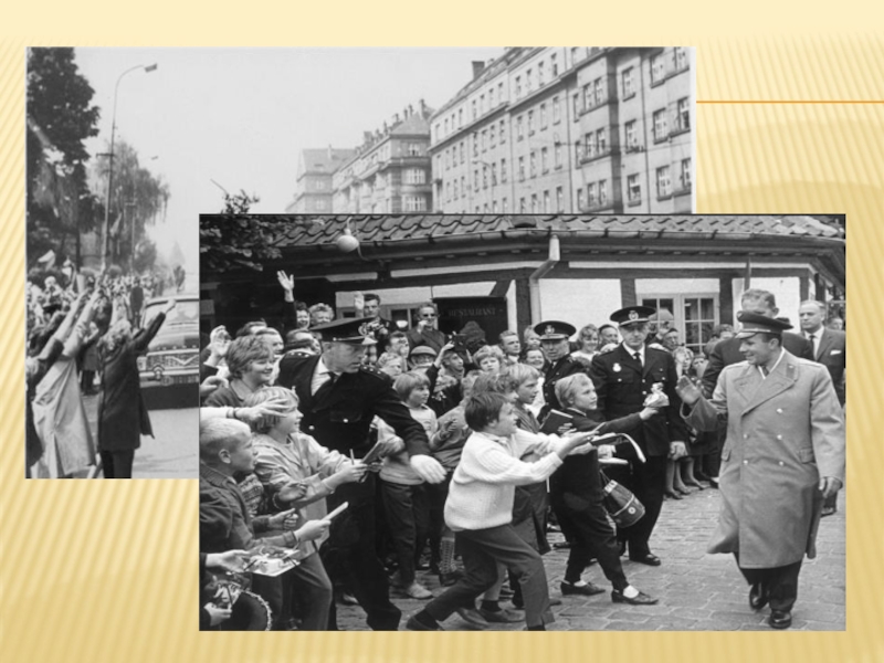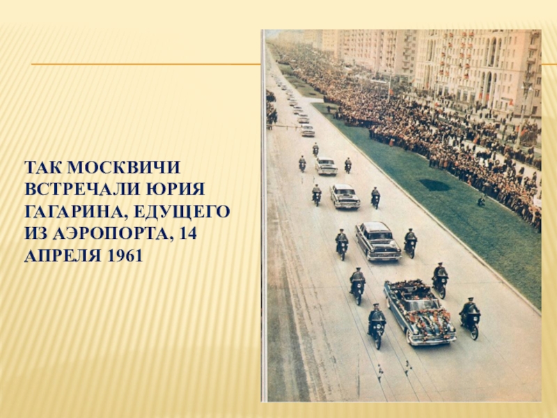 Слайд 45Так москвичи встречали Юрия Гагарина, едущего из аэропорта, 14 апреля 1961