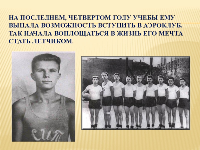 Слайд 7На последнем, четвертом году учебы ему выпала возможность вступить в аэроклуб.