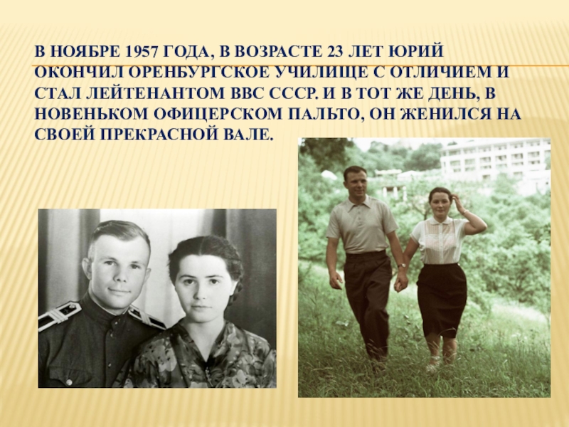 Слайд 11В ноябре 1957 года, в возрасте 23 лет Юрий окончил оренбургское