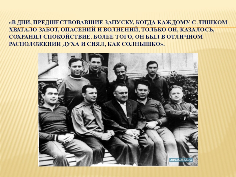 Слайд 25«В дни, предшествовавшие запуску, когда каждому с лишком хватало забот, опасений