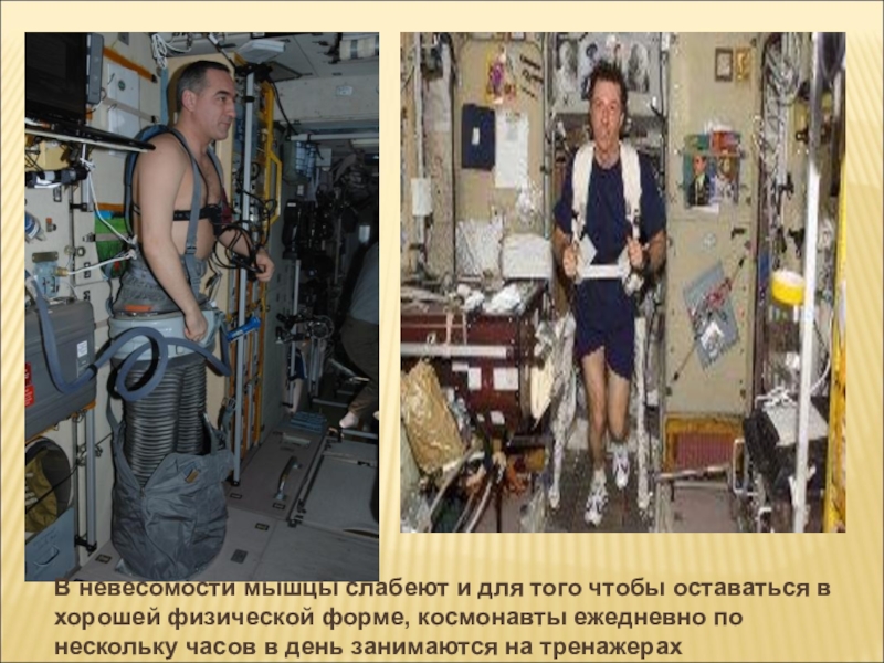 Слайд 16В невесомости мышцы слабеют и для того чтобы оставаться в хорошей