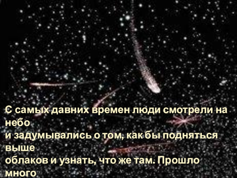 С самых давних времен люди смотрели на небо и задумывались о том, как бы подняться вышеоблаков и узнать, что же там. Прошло много времени пока люди научились строить летательные аппараты