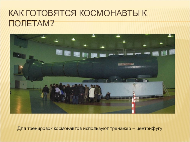 Слайд 7Для тренировок космонавтов используют тренажер – центрифугу