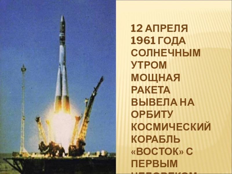 12 апреля 1961 года солнечным утром мощная ракета вывела на орбиту