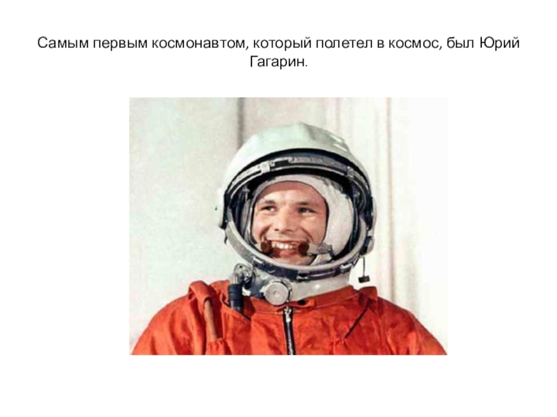 Слайд 5Самым первым космонавтом, который полетел в космос, был Юрий Гагарин.