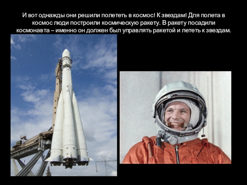 И вот однажды они решили полететь в космос! К звездам! Для полета в космос люди построили космическую