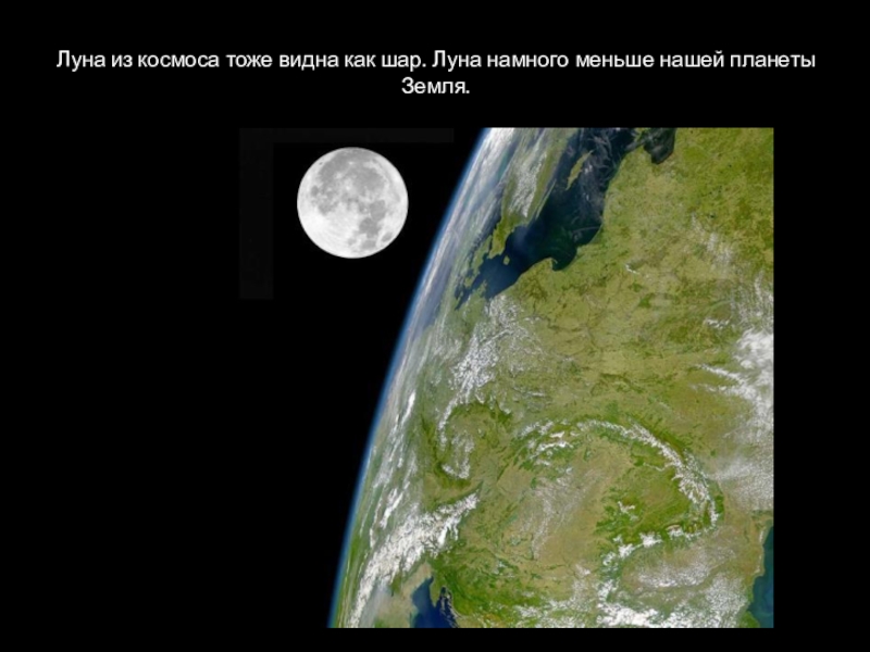 Слайд 11Луна из космоса тоже видна как шар. Луна намного меньше нашей