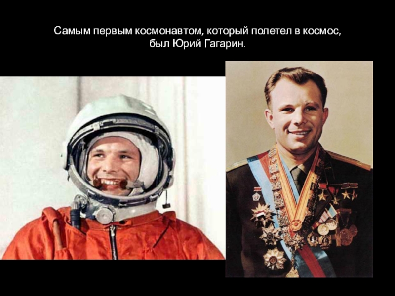 Слайд 5Самым первым космонавтом, который полетел в космос, был Юрий Гагарин.