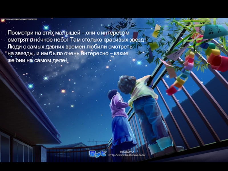 Посмотри на этих малышей – они с интересом смотрят в ночное небо! Там столько красивых звезд! Люди с самых давних времен любили смотреть на звезды, и им было очень интересно – какие