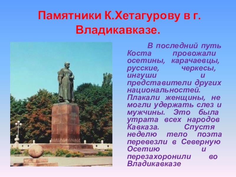 Слайд 14 Памятники К.Хетагурову в г. Владикавказе.