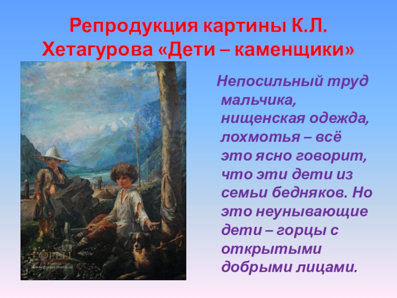 Слайд 8Репродукция картины К.Л.Хетагурова «Дети – каменщики»