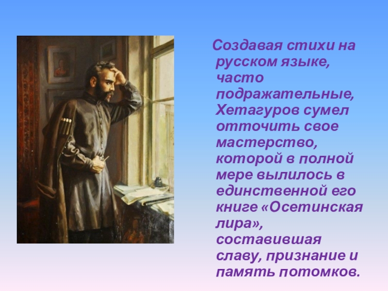 Создавая стихи на русском языке, часто подражательные, Хетагуров