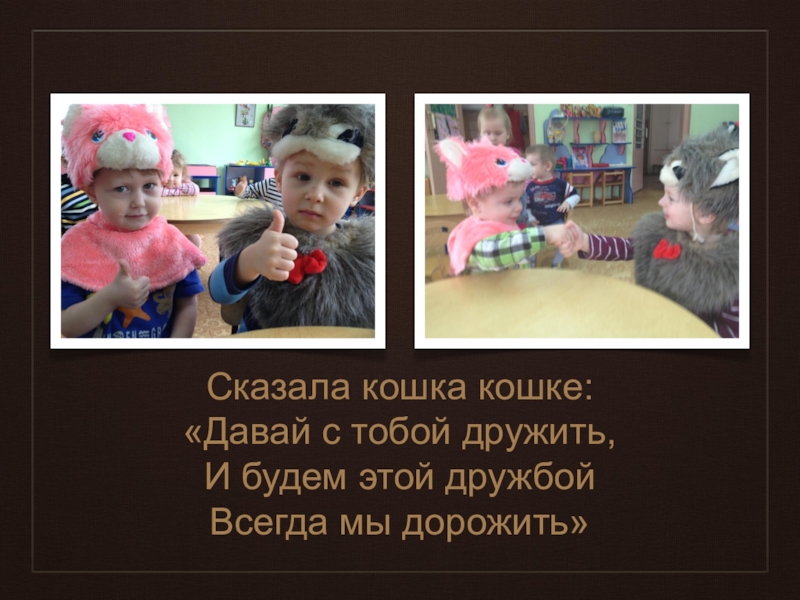 Слайд 13Сказала кошка кошке: «Давай с тобой дружить, И будем этой дружбой Всегда мы дорожить»