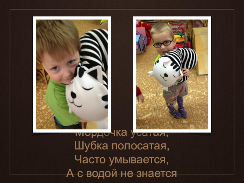 Слайд 6Мордочка усатая, Шубка полосатая, Часто умывается, А с водой не знается