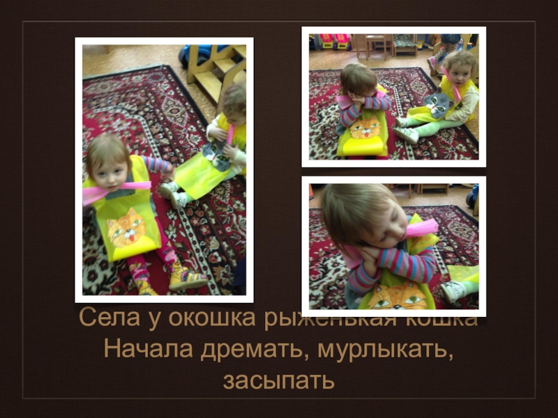 Слайд 11Села у окошка рыженькая кошка Начала дремать, мурлыкать, засыпать