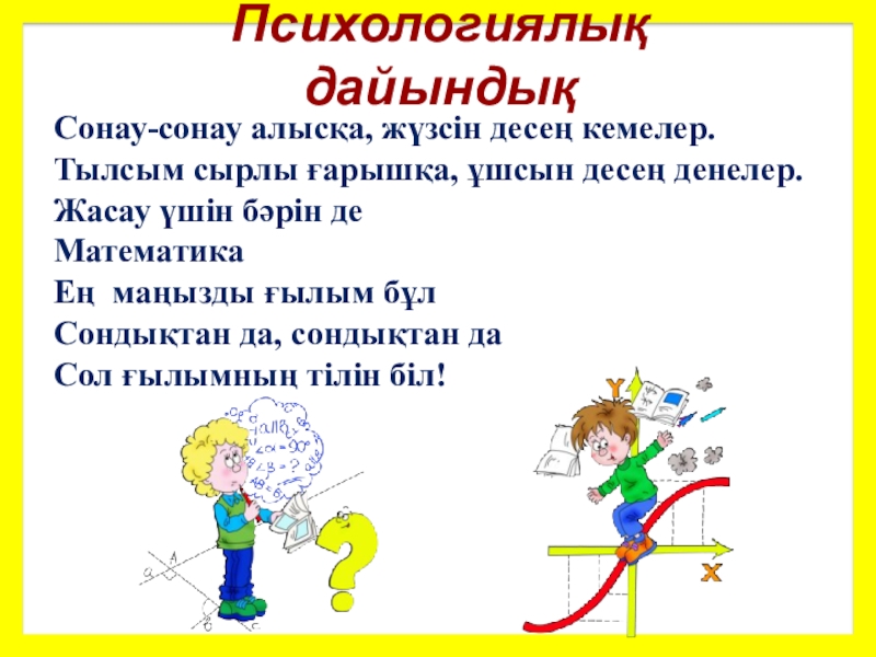 Дамытушылық: логикалық ойлау есептеумен танымдық қабілеттерін, зейінін, есте сақтауын дамыту, өздіктерінен жұмыс істей білуіне дағдыландыру