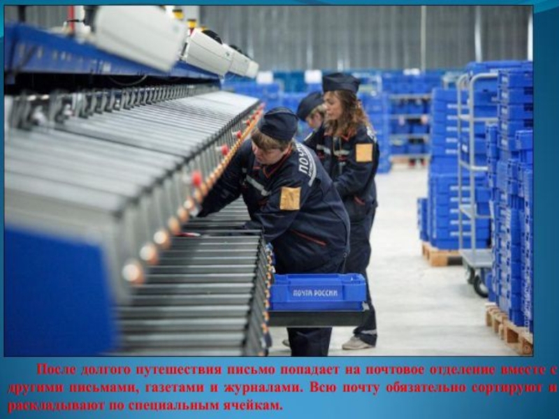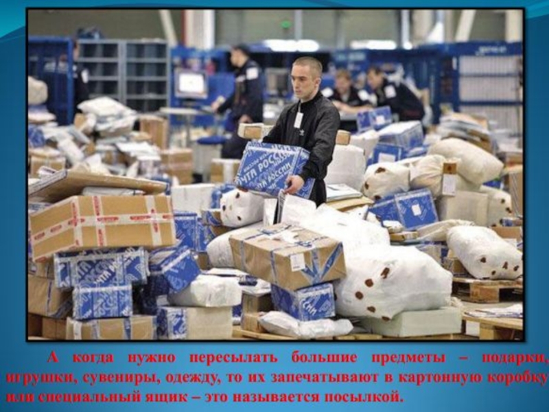 Наша работа очень интересная и ответственная. Мы принимаем письма, посылки, бандероли, готовим их к дальнейшему пути, иногда очень долгому.