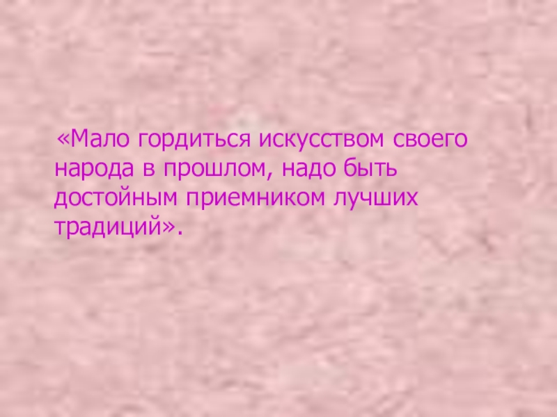 Слайд 17 «Мало гордиться искусством своего народа в прошлом, надо быть
