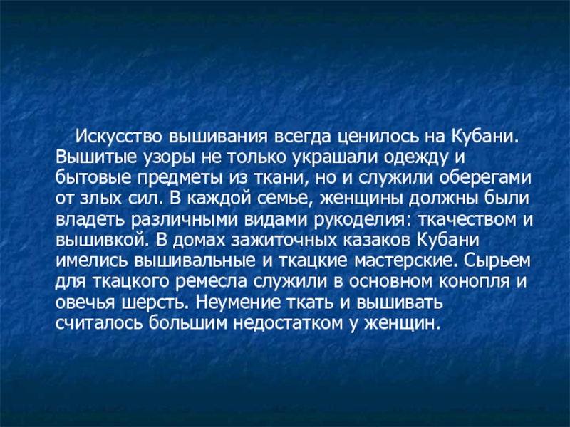 Слайд 8 Искусство вышивания всегда ценилось на Кубани. Вышитые