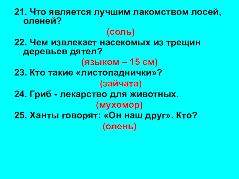 Слайд 2421. Что является лучшим лакомством лосей, оленей?