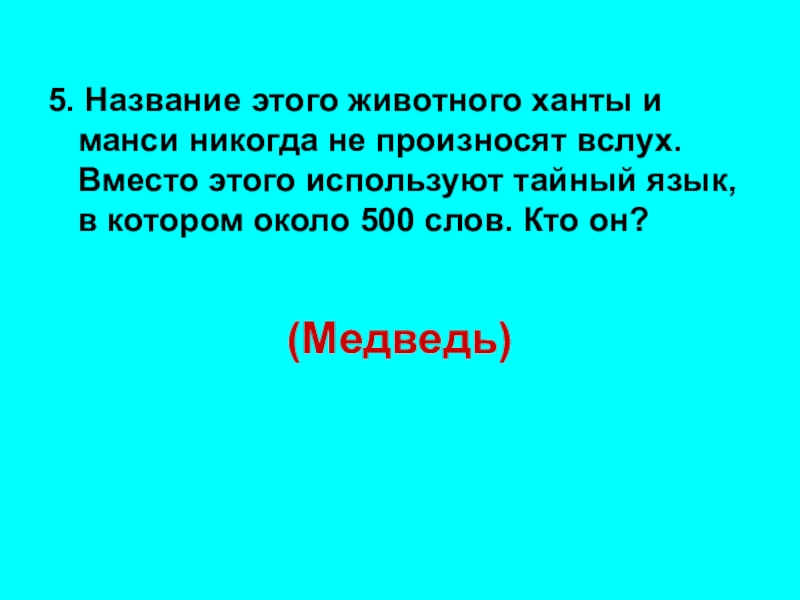 5. Название этого животного ханты и манси никогда не произносят вслух.