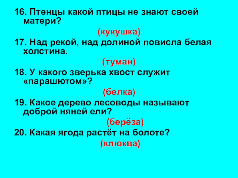 Слайд 2316. Птенцы какой птицы не знают своей матери?