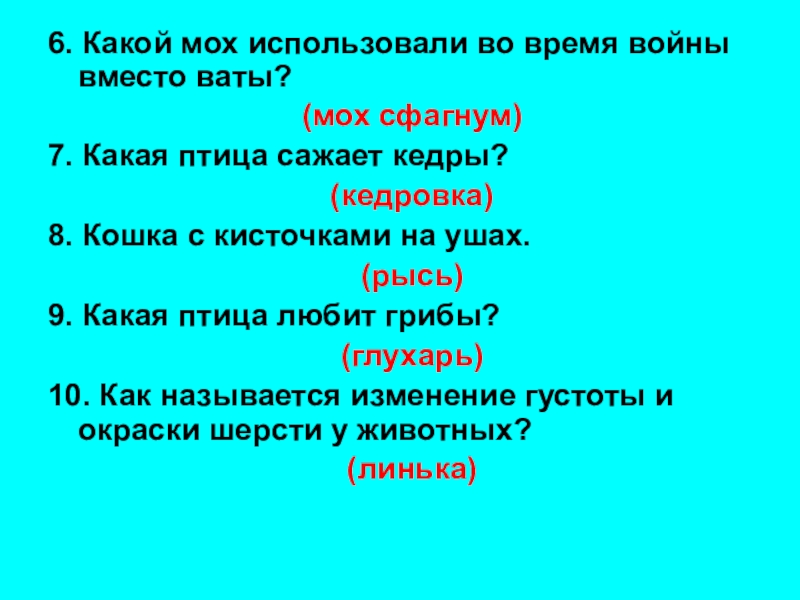 Слайд 216. Какой мох использовали во время войны вместо ваты?