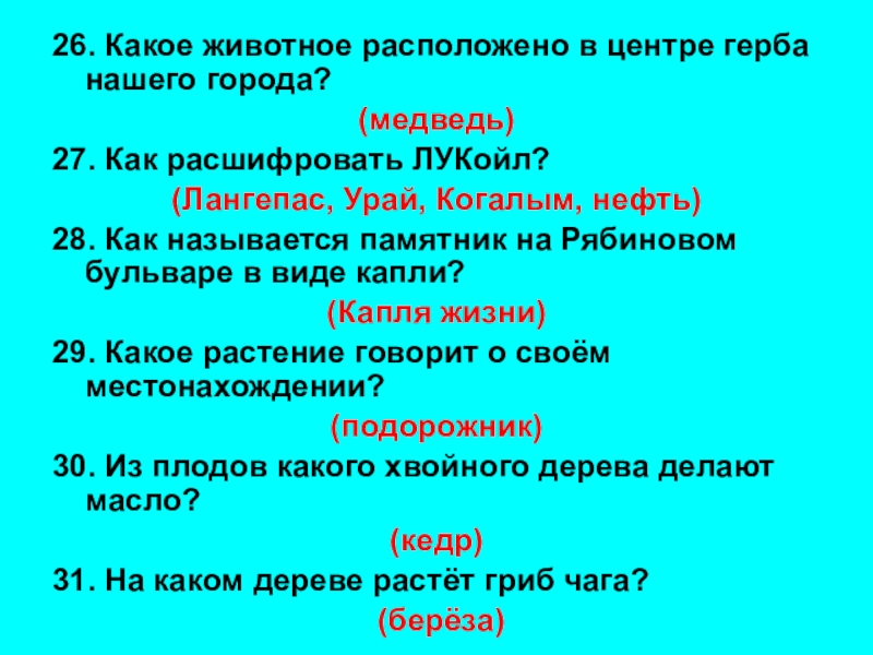 Слайд 2526. Какое животное расположено в центре герба нашего города?