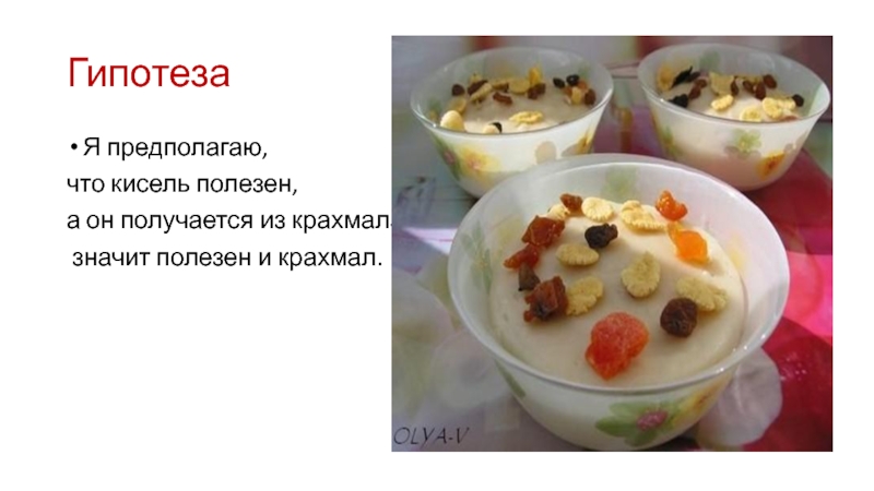 ГипотезаЯ предполагаю, что кисель полезен, а он получается из крахмала, значит полезен и крахмал.