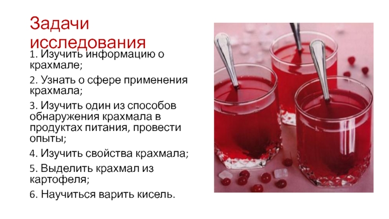 продуктах питании, изучение его свойств и получение киселя.